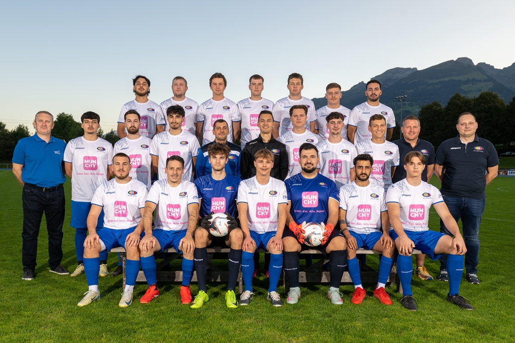 mitte v.l.n.r: Daniel Meier (Sponsor), Ricardo Gouveia Figueiredo, Patrick Beck, Gianluca Rizzo, Co-Trainer Ramon Bearth, Trainer Fabian Kaiser, Justin Matt, Attila Vögeli, Dominik Heeb, Hanno Konrad (Präsidium, Ressort Veranstaltungen), Nermin Tuhcic (Präsidium, Ressort Spielbetrieb)